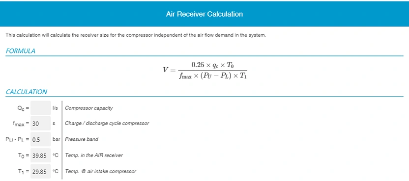 एयर भण्डारण ट्याङ्की छनोट गर्नको लागि राम्रो नियम भनेको 3-4 ग्यालन हावा प्रति CFM प्रवाह दर, वा 10-15 लिटर प्रति सेकेन्ड कम्प्रेस्ड हावा प्रति सेकेन्ड, प्रयोग गरिएको एयर कम्प्रेसरको प्रकार र अनुप्रयोगमा निर्भर गर्दछ। एयर कम्प्रेसर चयन जस्तै, तपाईंको प्रणालीको लागि उपयुक्त एयर रिसीभर ट्यांक विशिष्टताहरू निर्धारण गर्दा धेरै कारकहरू विचार गर्नुपर्छ। निम्न कारकहरू दृढताका साथ सिफारिस गरिन्छ: