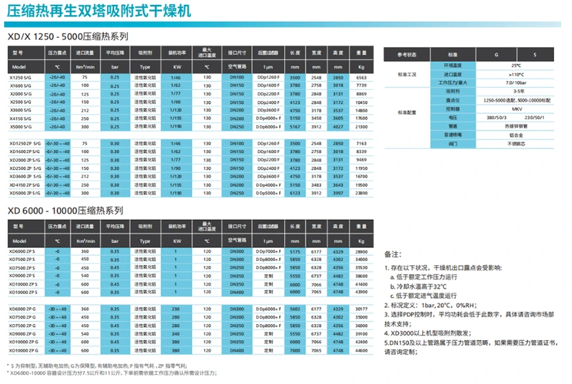 XD वा X कम्प्रेसन तातो शोषण ड्रायरहरूले उच्च-गुणस्तरको adsorbents प्रयोग गर्छन् र तेल-मुक्त कम्प्रेसरबाट कम्प्रेसनको तापलाई प्रभावकारी रूपमा सोखनकर्तालाई पुन: उत्पन्न गर्न प्रयोग गर्दछ, ऊर्जा खपत र मर्मत लागतलाई उल्लेखनीय रूपमा घटाउँछ।